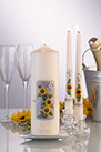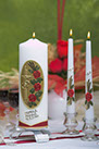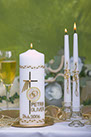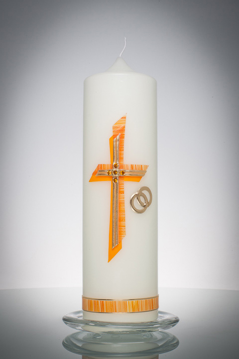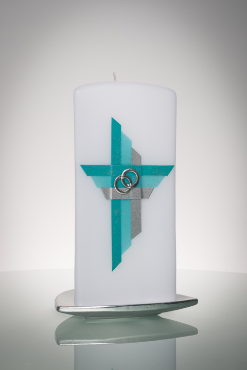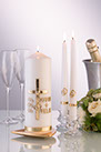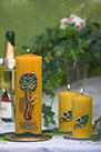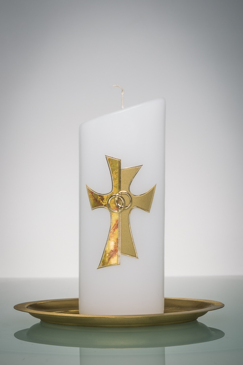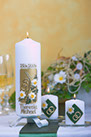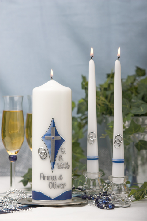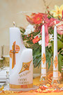Die Rückseite der Kerzen wird mit einem Kreuzsymbol und Ihren Namen verziert.