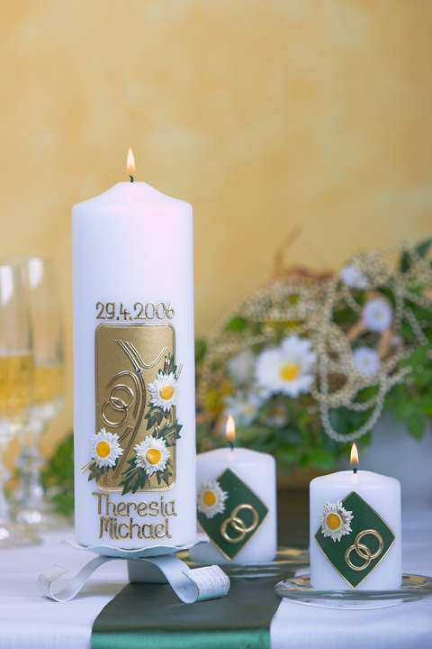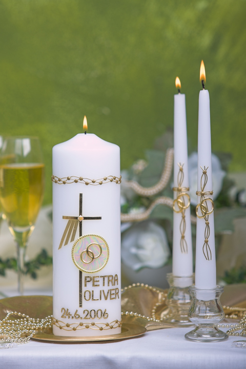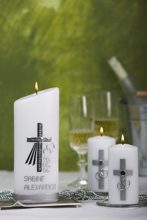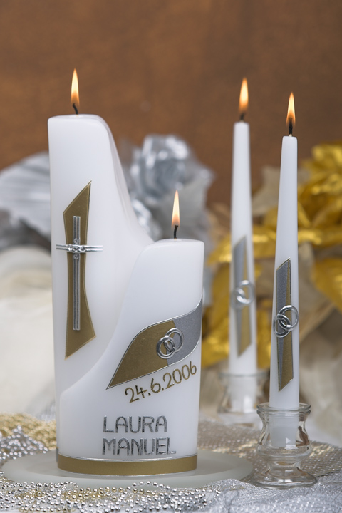 Wachsfarbe: elfenbein, silber getupft, gold getupft, glanzsilber, glanzgold